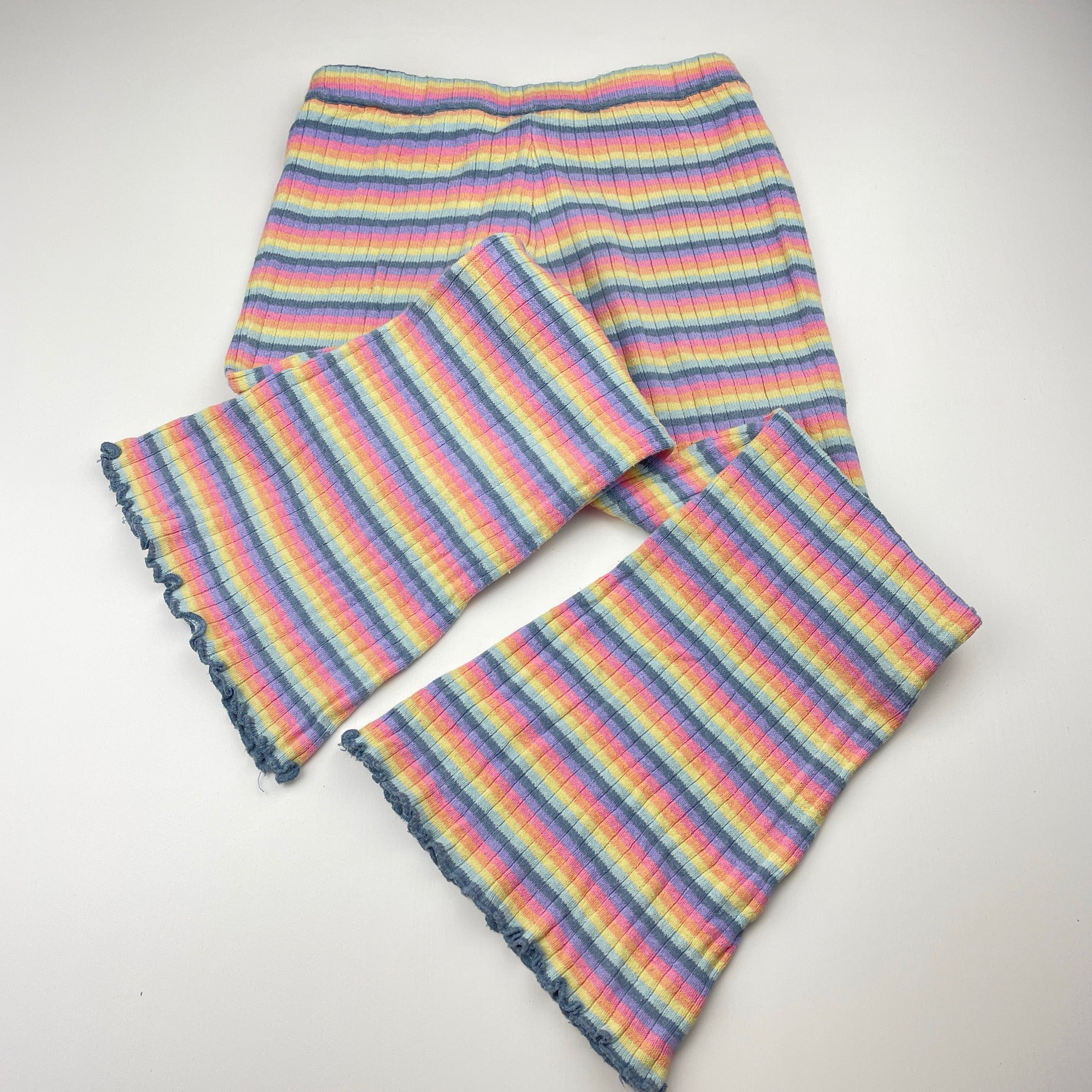 GHANDA, ribbed knit bootcut pants, elasticated, Inside leg: 49cm, FUC, size 7-8,