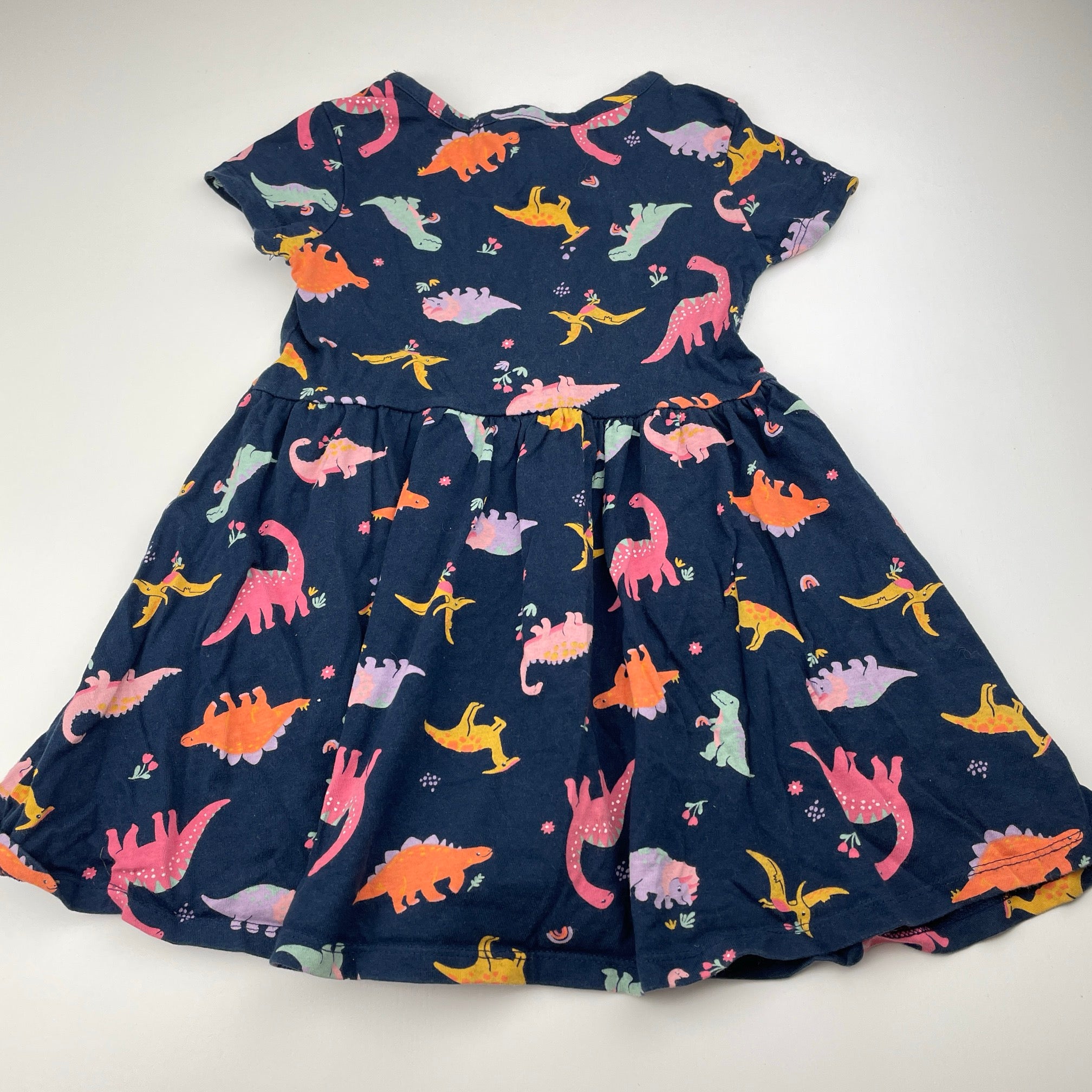 Anko, navy cotton casual dress, dinosaurs, EUC, size 3, L: 45cm