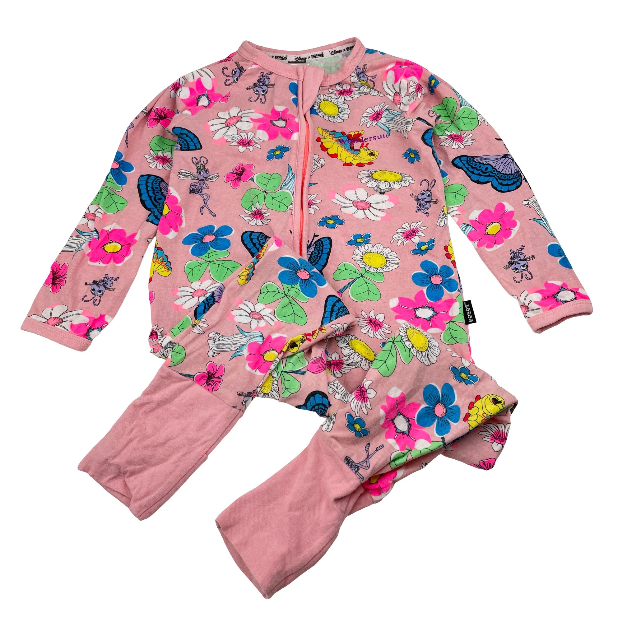 Bonds, X Disney Bugs Life zip wondersuit / zippy / romper, light marks on feet, FUC, size 2,