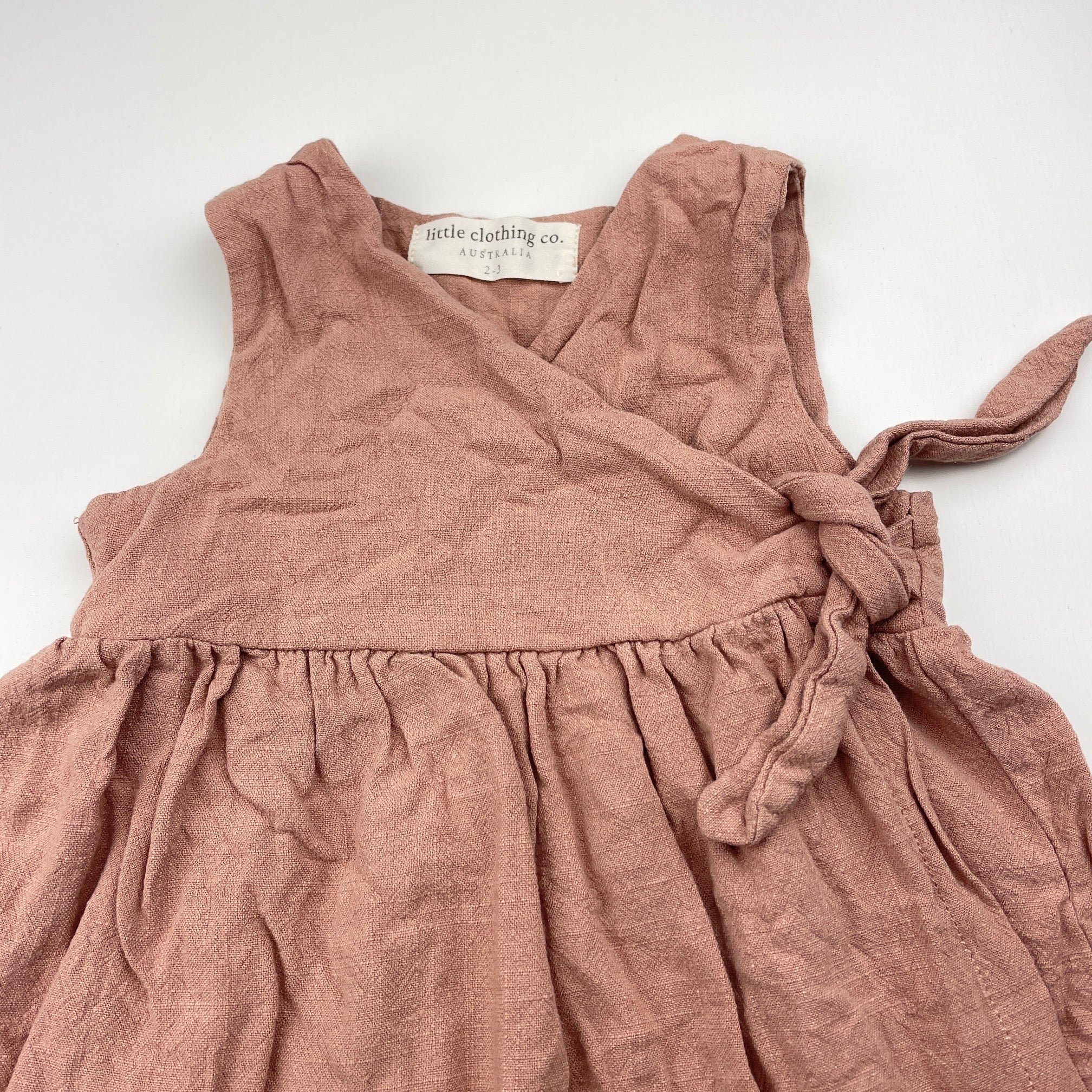 Little Clothing Co, linen/cotton wrap-over dress, EUC, size 2-3, L: 44cm