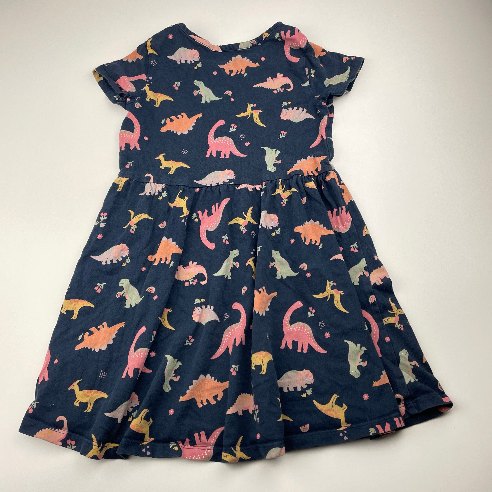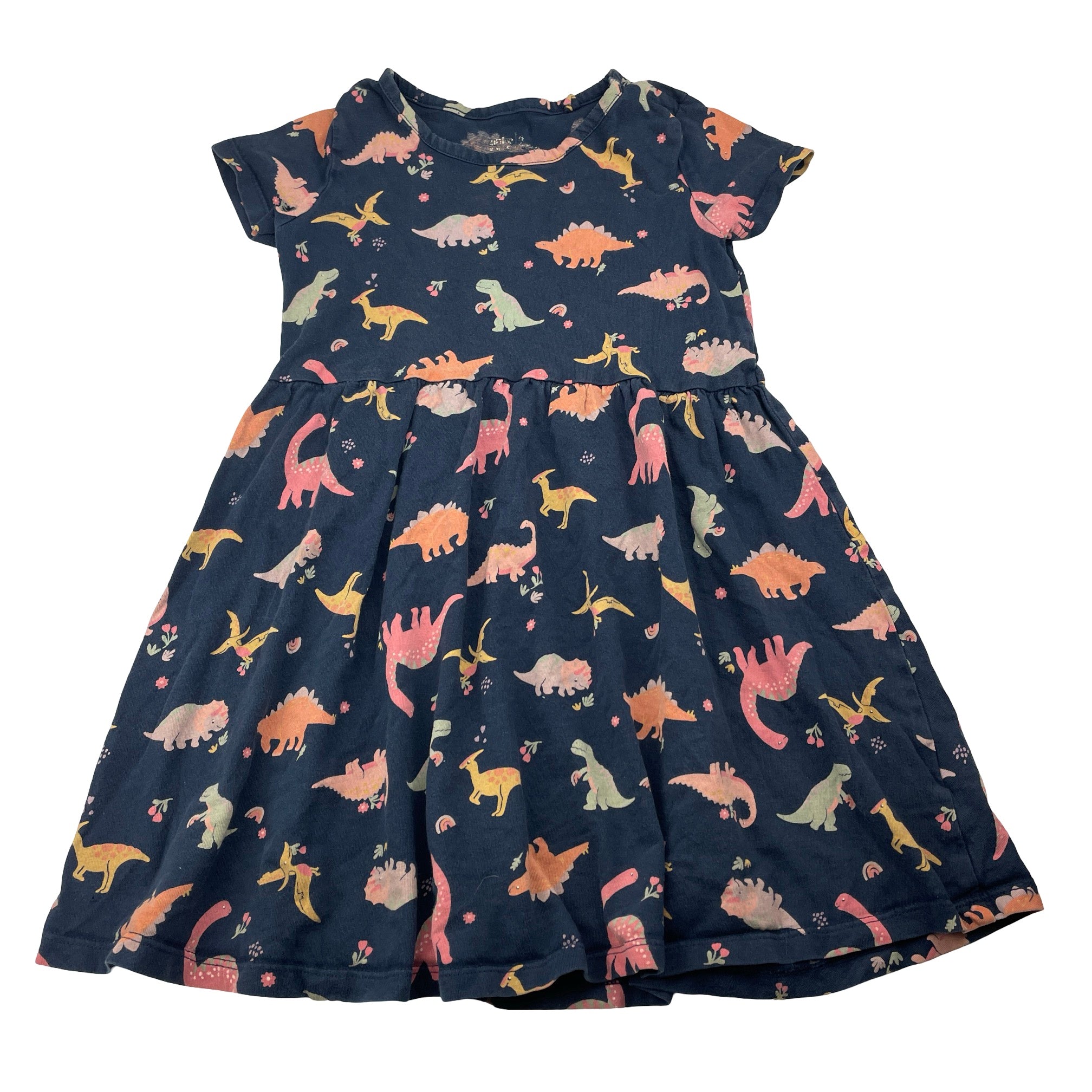 Anko, navy cotton dress, dinosaurs, FUC, size 5, L: 54cm