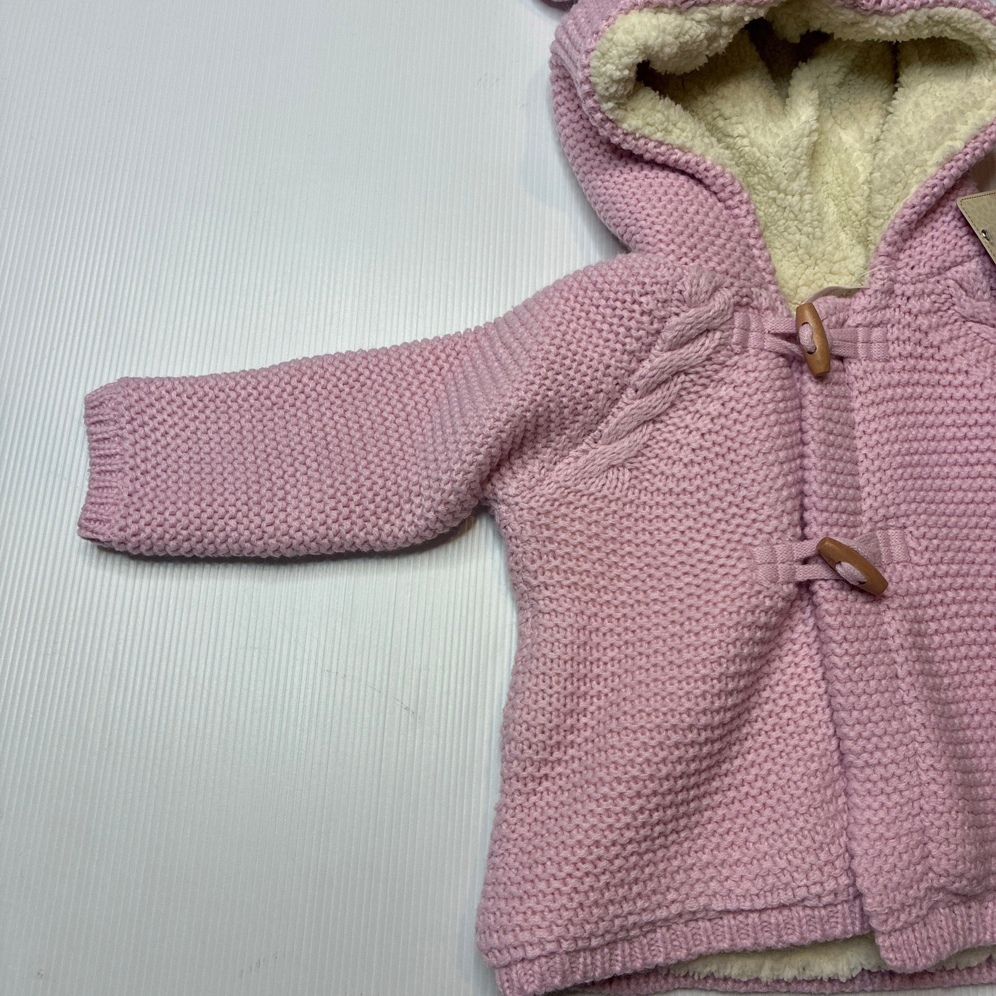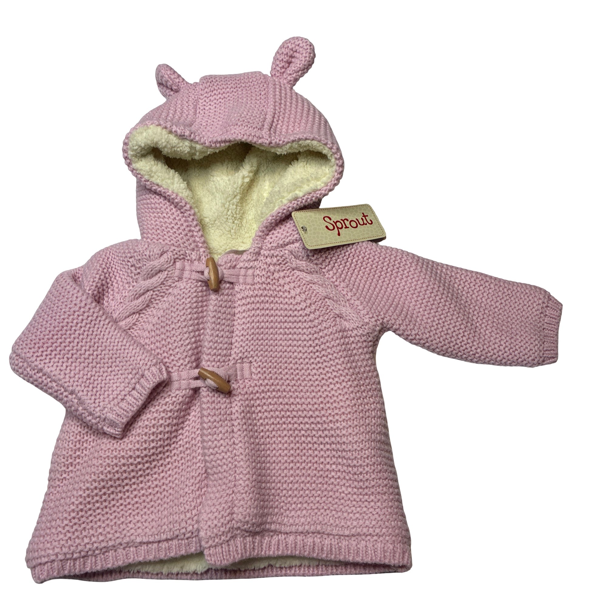 Sprout, fleece lined chunky knit hooded sweater / cardigan, NEW, size 000,