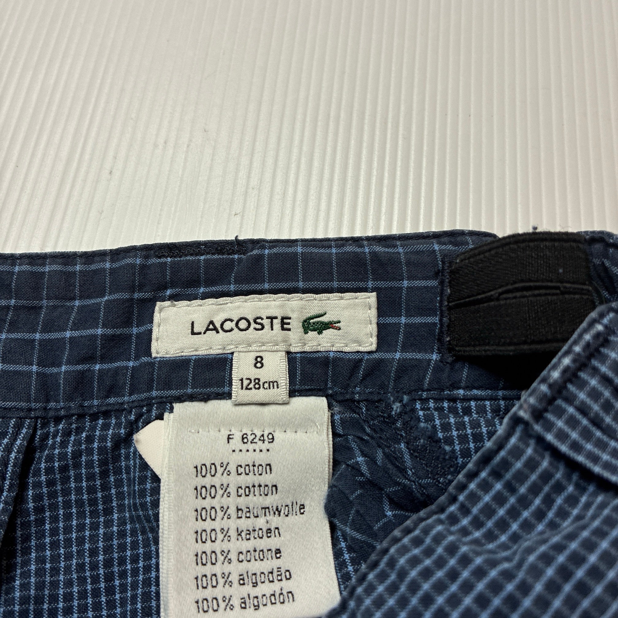 LACOSTE, checked cotton shorts, adjustable, GUC, size 8,