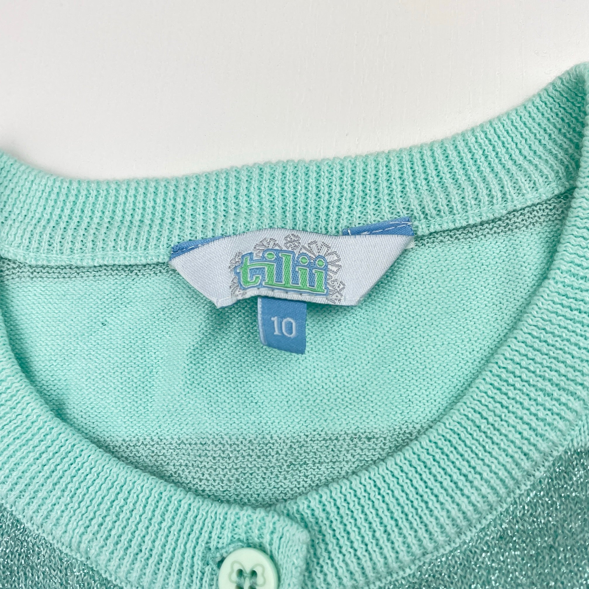 Tilii, lightweight knit cardigan, light marks back hem & right sleeve, FUC, size 10,