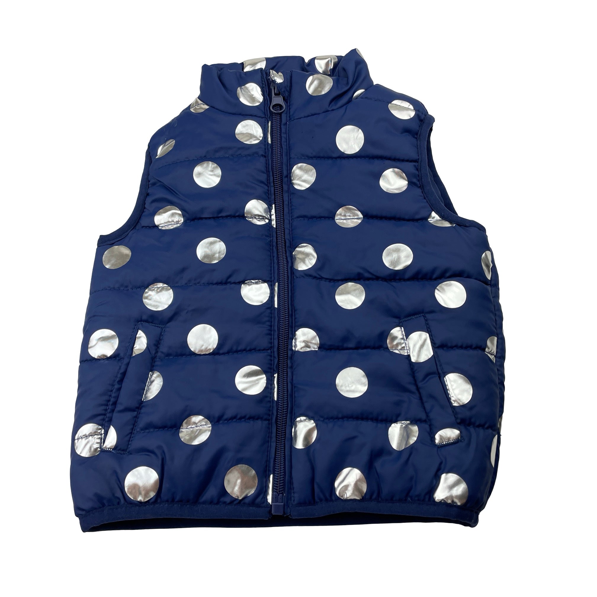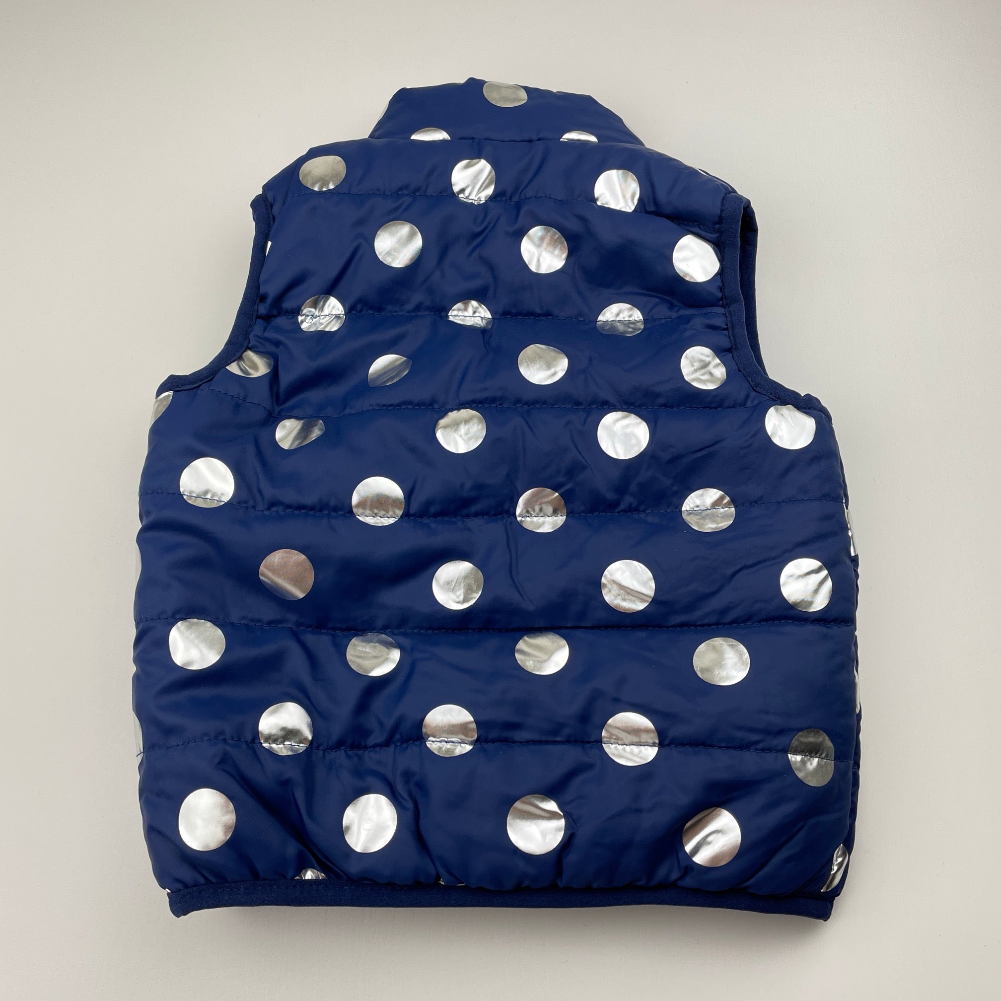 B Collection, navy & silver spot puffer vest, EUC, size 2,